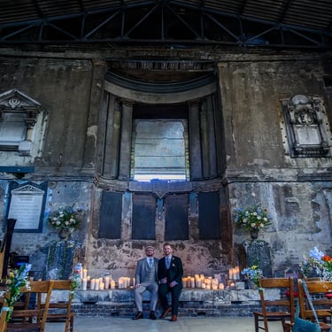 Chris and Mason’s wedding at The Asylum Chapel in Peckham was everything this iconic South London venue does best - intimate, expressive and full of personality.