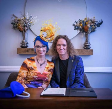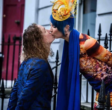 Some weddings are quiet and subtle. Others are full-on colour explosions - and Rose & Ian’s Islington registry office wedding definitely landed in the latter category. I knew it was going to be special the moment I saw Rose’s incredible handmade fascinator (yes, she made it herself - what a legend).
