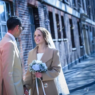 I stayed observant rather than directive. The laugh mid-confetti. The exhale after the ceremony. The “we actually did it” moment before heading off into married life.