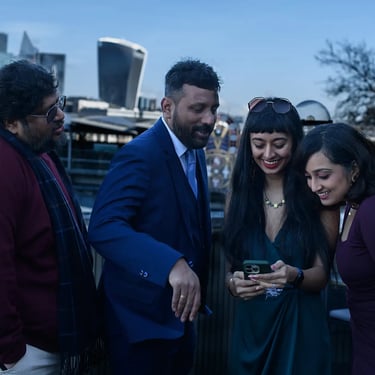 Guests overlooking the Thames. Drinks flowing. Conversations stretching longer. The kind of reception where people actually relax because the big moment has already happened.